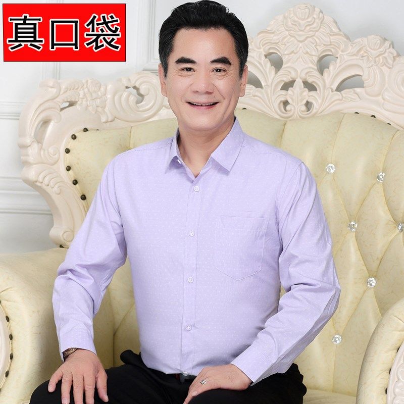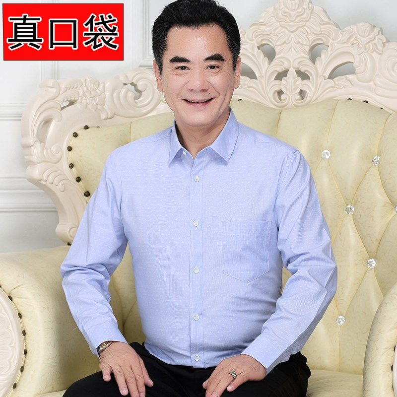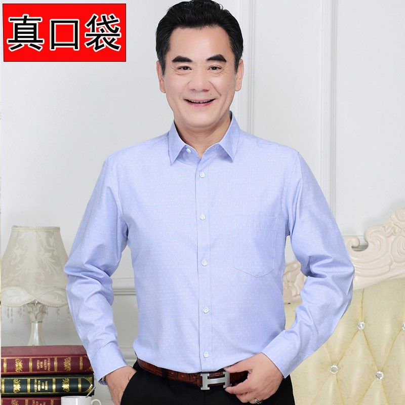 中老年衬衫男f士丝光棉爸爸衬衫长袖春秋夏季衬衣中年老人父亲衬