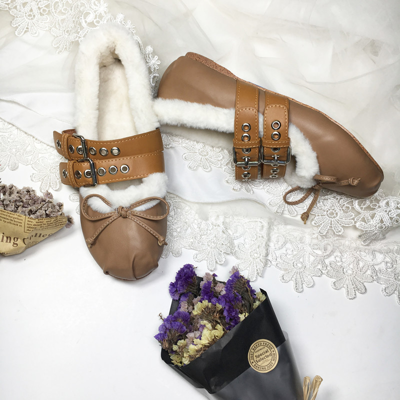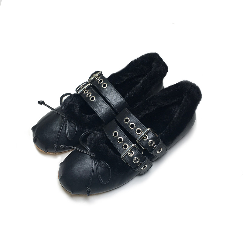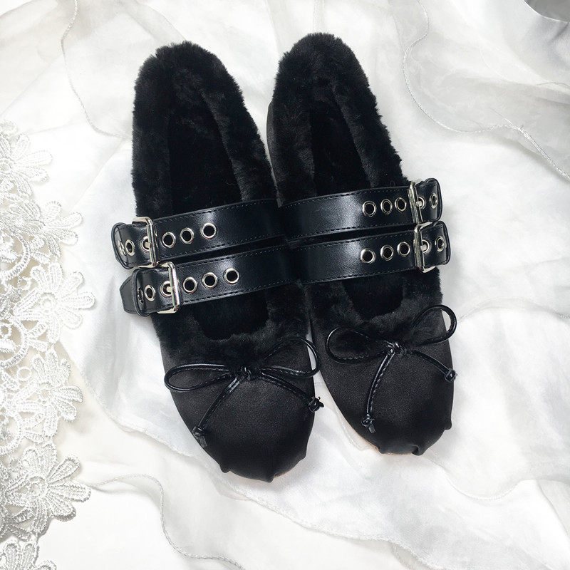 2025秋冬新款芭蕾舞保暖毛毛豆豆鞋复古圆头平底加绒单鞋女MIU