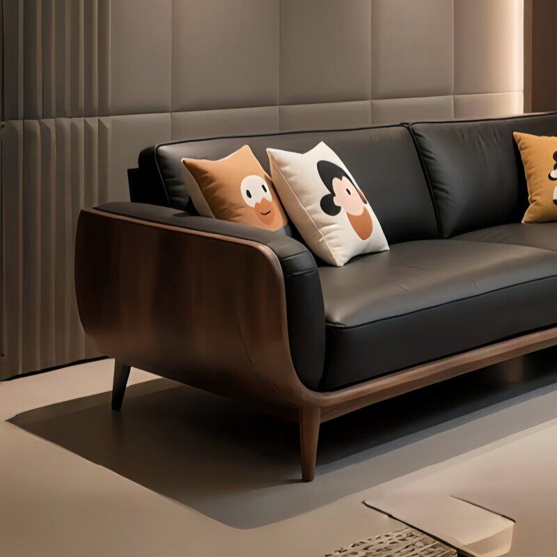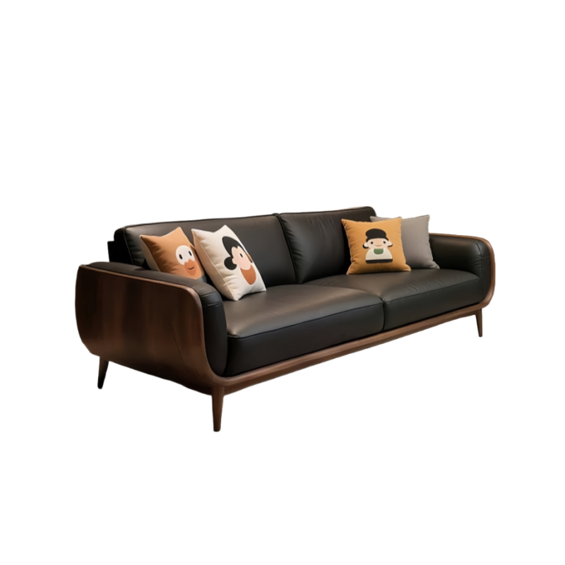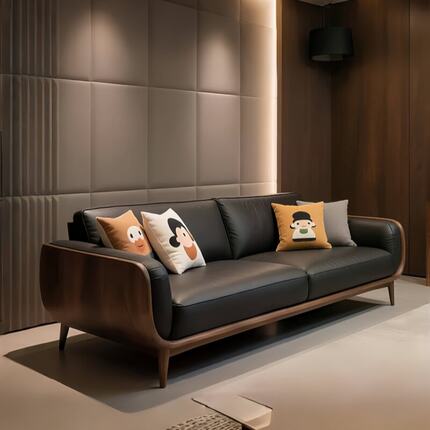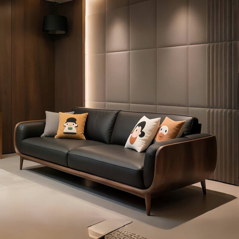 新中式实木沙发组合客厅办公室沙发黑胡桃木直排真皮舒适皮艺沙发