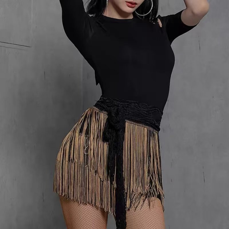 拉丁舞围裙女流苏裙新款成人摩登舞臀巾恰恰舞蹈裙伦巴国标半身裙