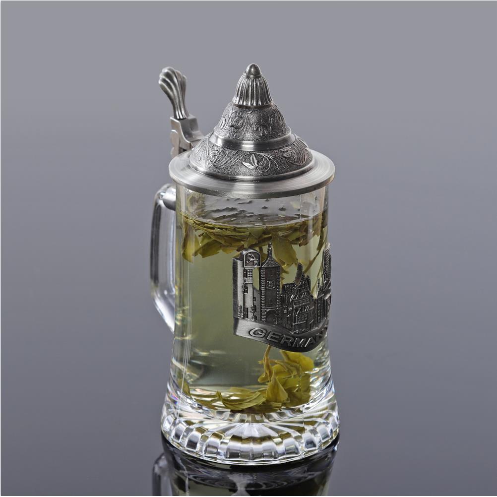 啤酒杯卡通玻璃带盖创意特色礼物钢化可装玻璃开水咖啡德国风格欧