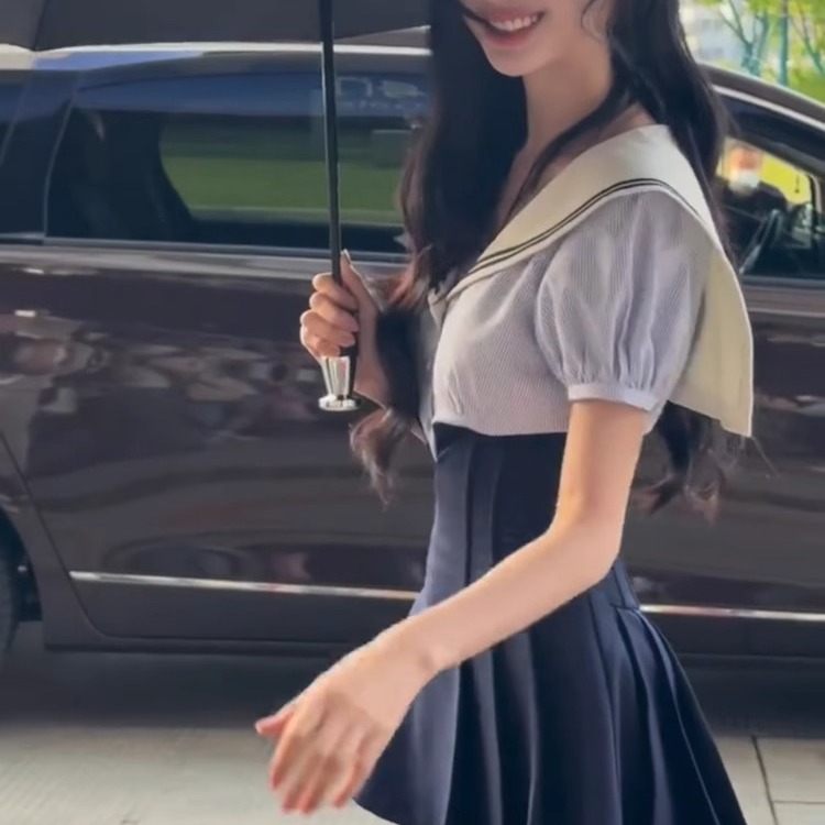 易梦玲同款 学院风套装女款夏季JK制服水手服海军领上衣百褶裙子