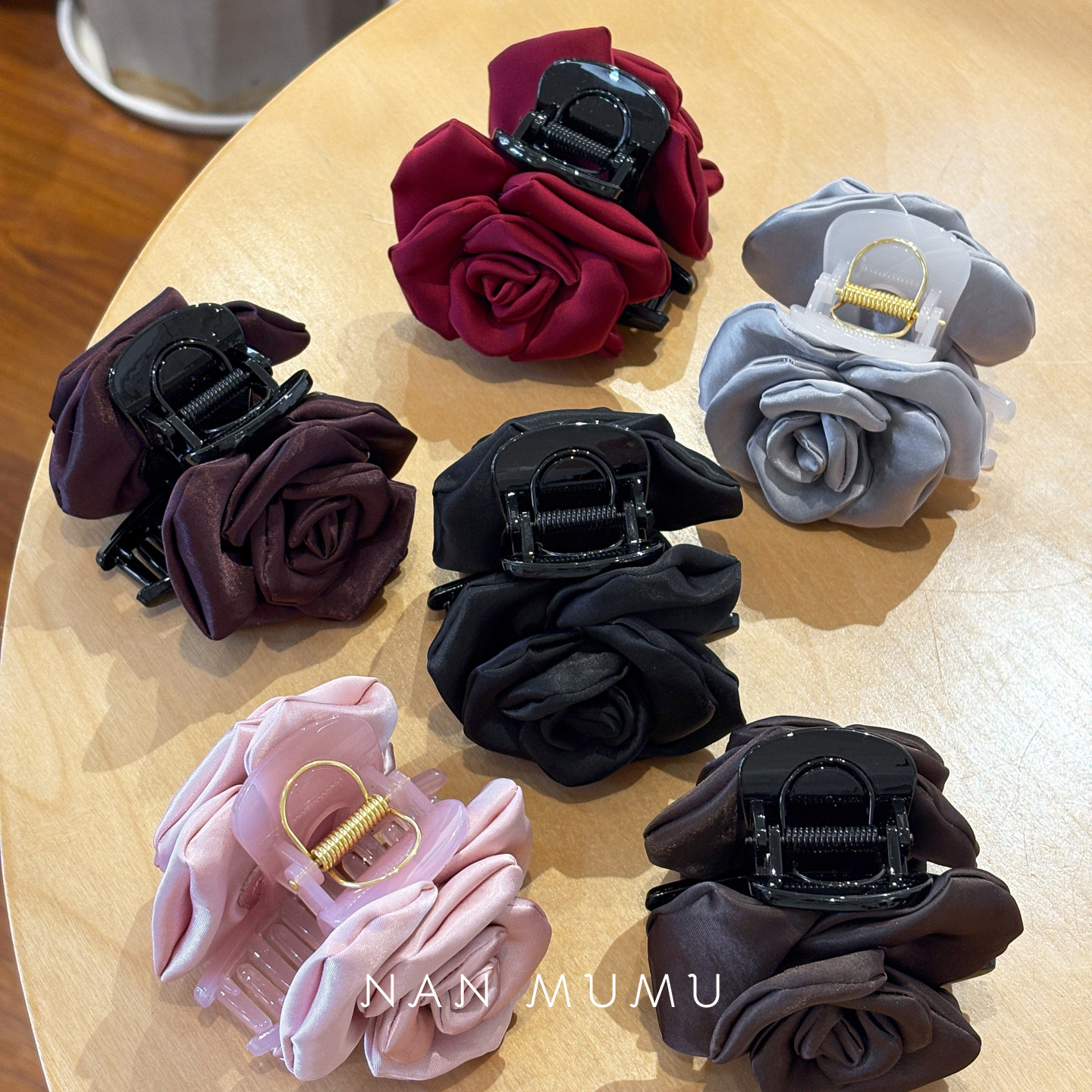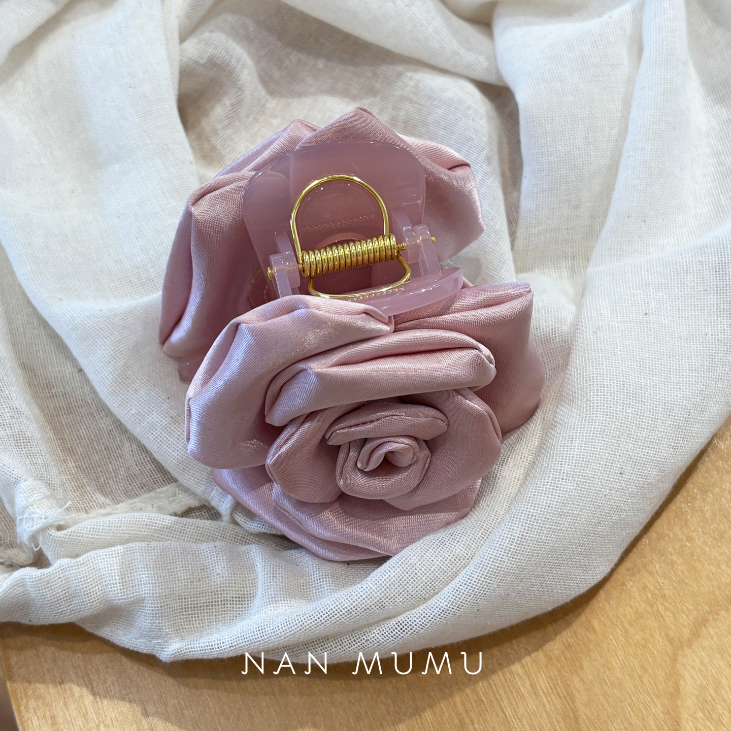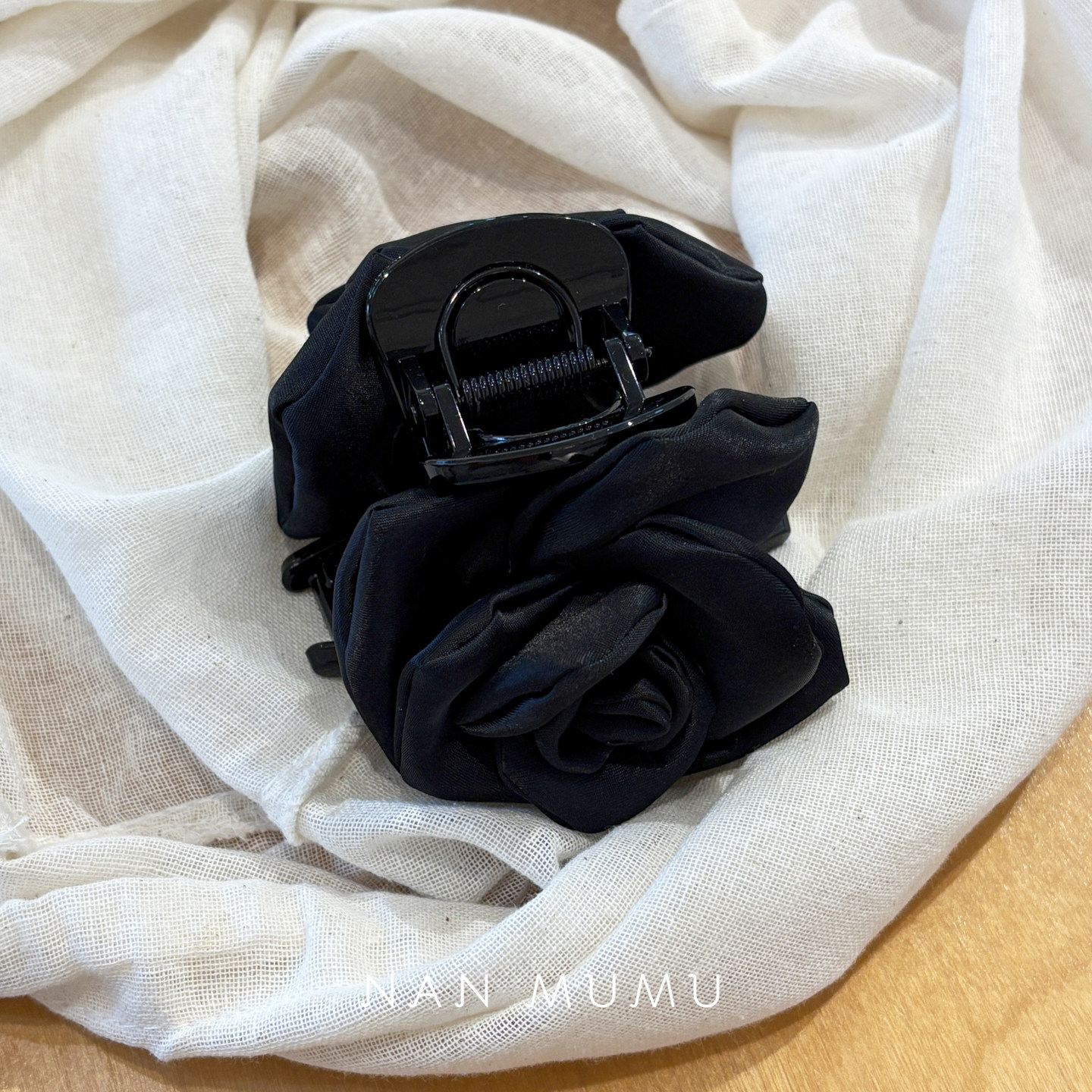 NANMUMU缎面玫瑰复古抓夹 韩国进口新中式绝美鲨鱼夹后脑勺发夹女