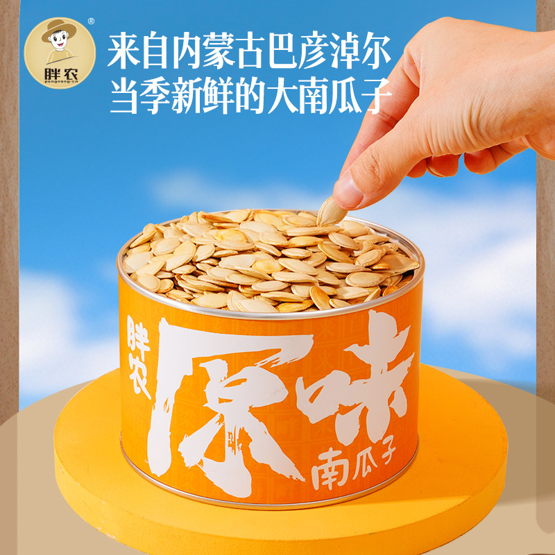 胖农原味大颗粒南瓜子当季新货 内蒙古炒熟白瓜籽葫芦籽220g桶装