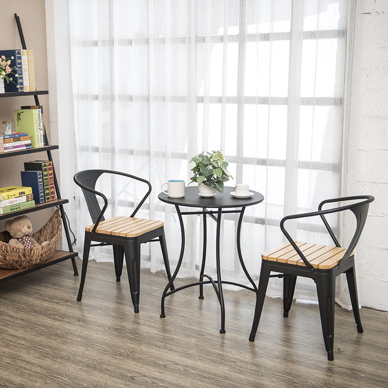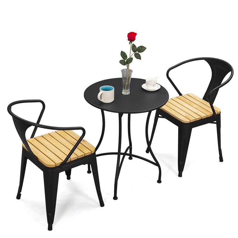 庭院阳台茶桌椅组合一桌二椅轻奢户外塑木圆桌防晒咖啡厅桌椅组合