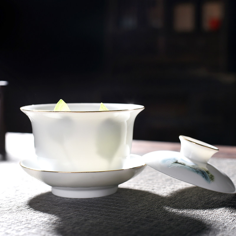 三才盖碗陶瓷敬茶杯单个冲茶盖碗大号办公家用茶具套装配件青花瓷