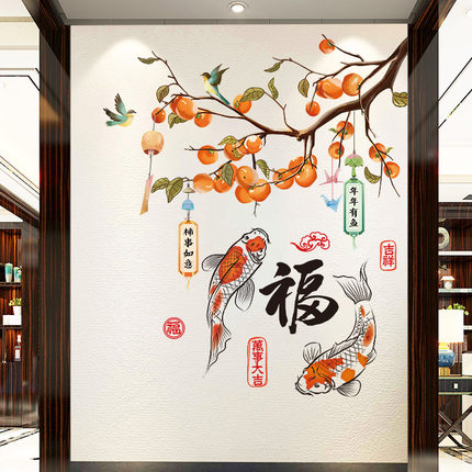 新年装饰入户门玄关背景墙面贴纸