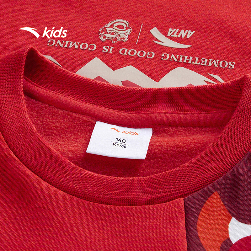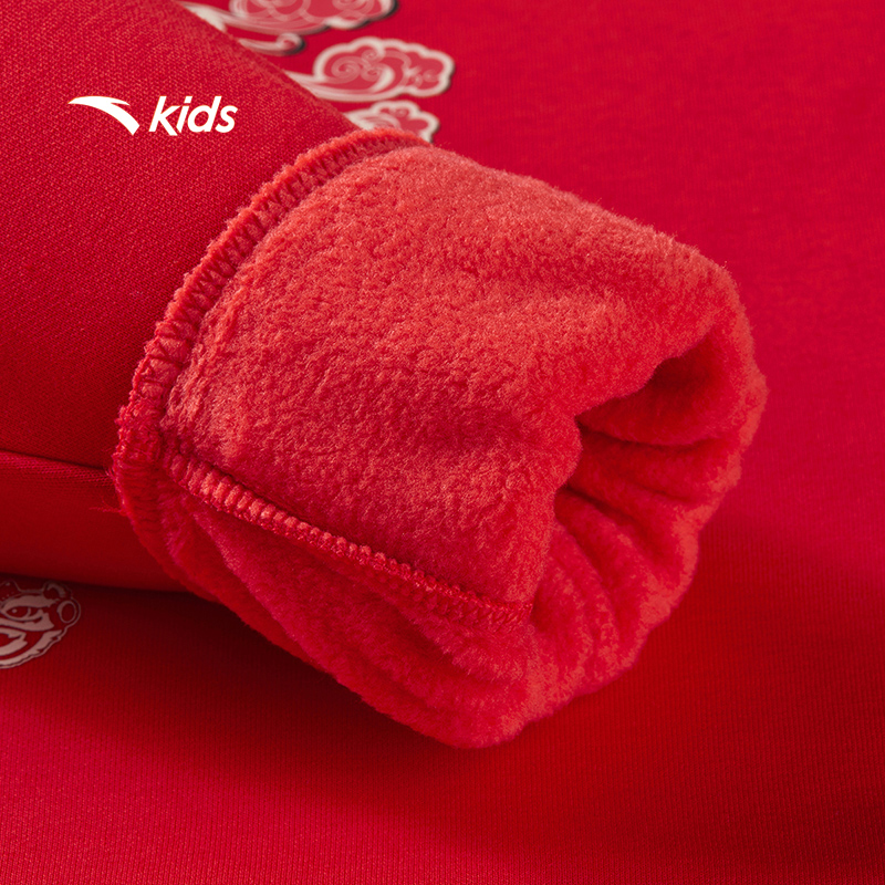 安踏童装男童卫衣2025新款春节龙服大童加绒保暖红色衣服儿童冬装