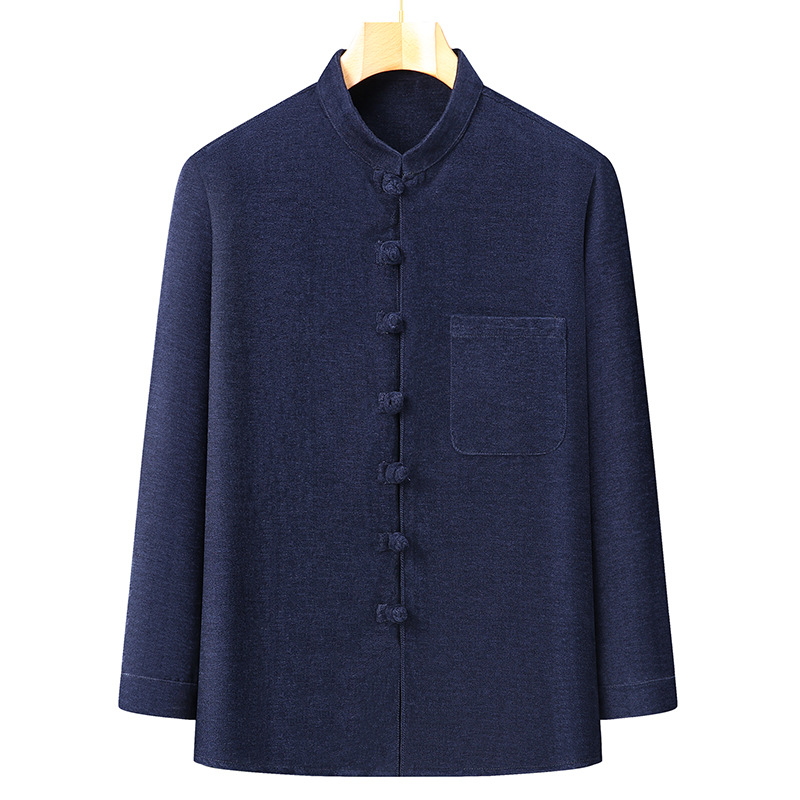 秋装中老年男装爸爸装长袖衬衫春秋新款中国风改良盘扣上衣服