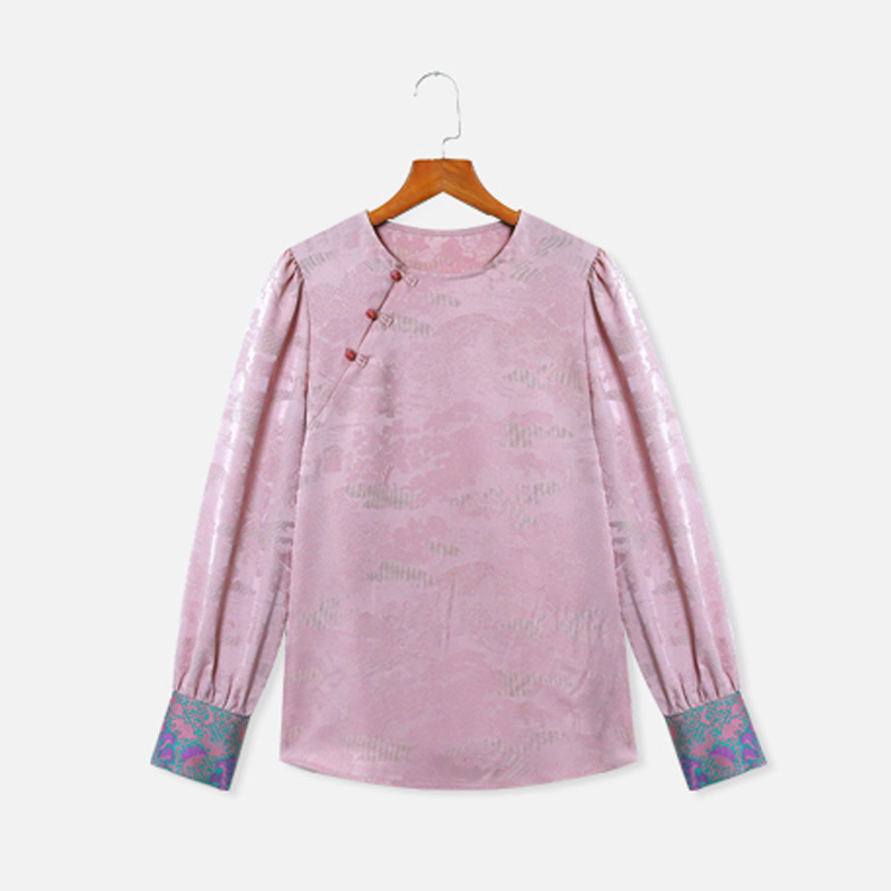 新中式国风盘扣长袖唐装上衣女2025春秋新款超好看小个子衬衫衬衣