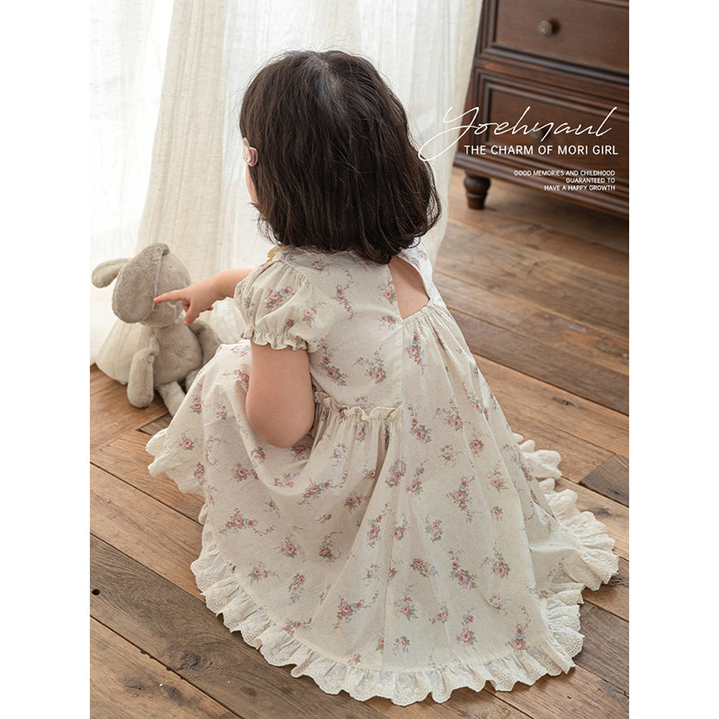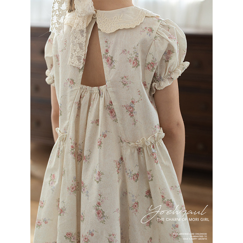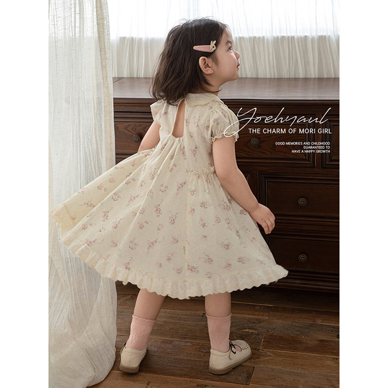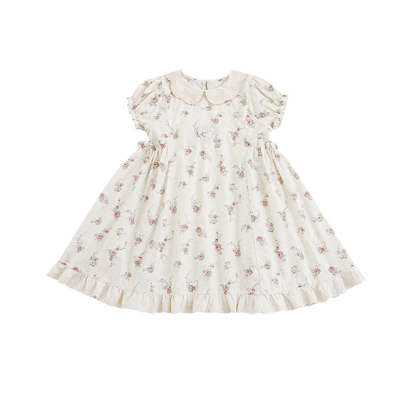 幼悠女童浪漫森系小碎花连衣裙夏季甜美可爱刺绣波浪花边翻领裙子