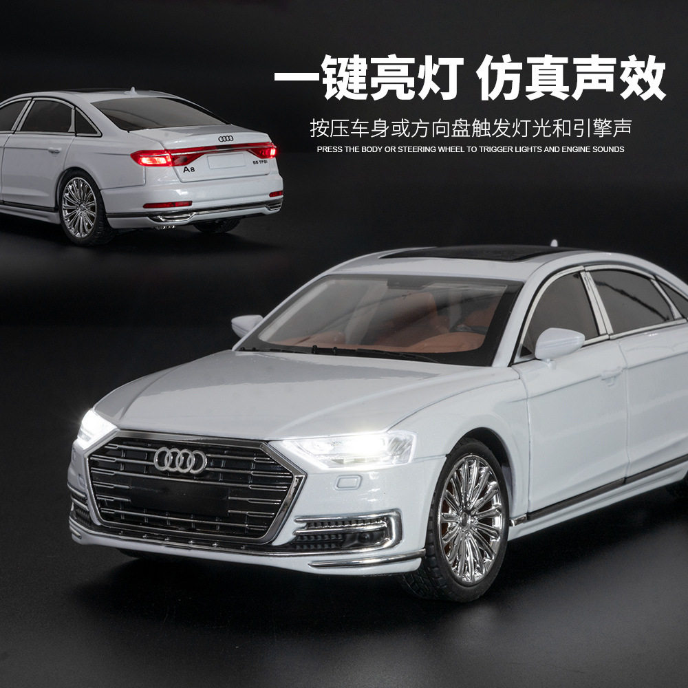正版合金车模1:24奥迪A8轿车带声光回力玩具汽车音乐模型摆件藏品