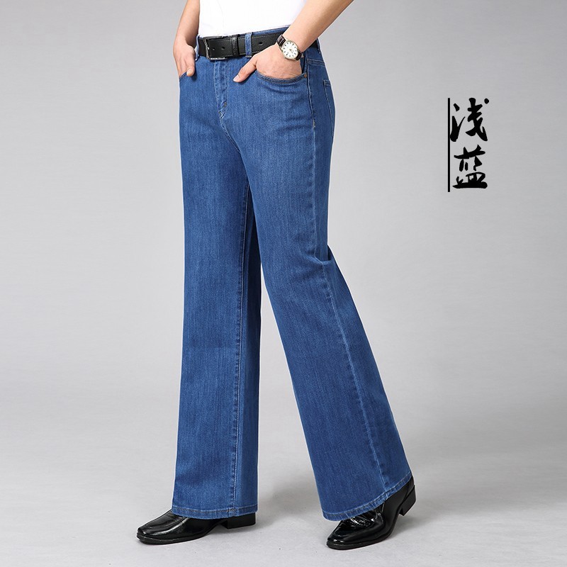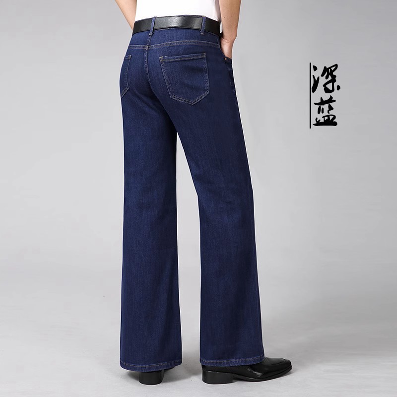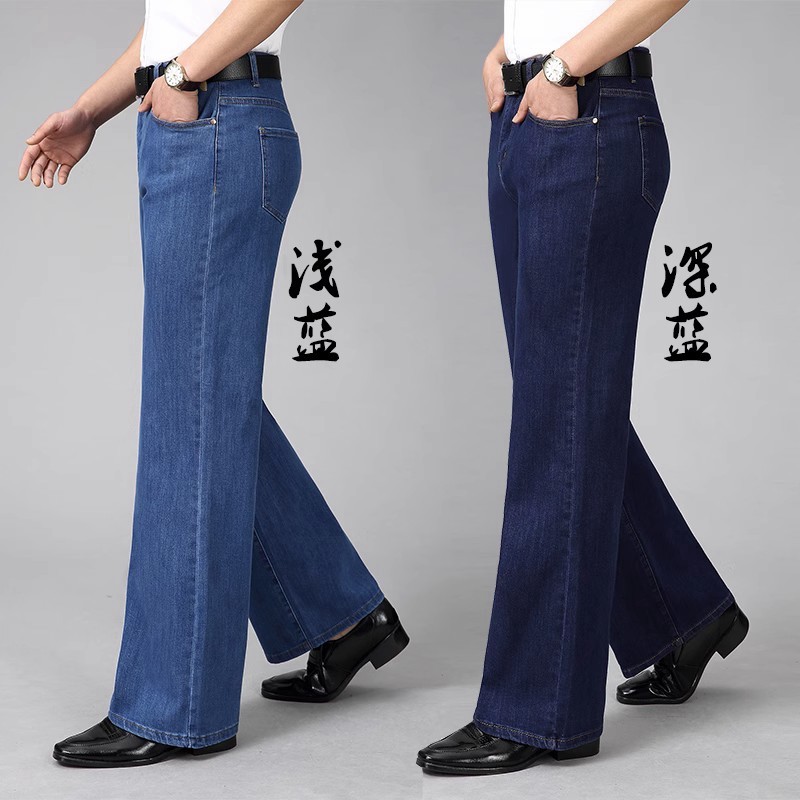 男士中老年春夏中高腰宽松弹力牛仔阔腿裤大直筒长裤男裤阔脚薄款