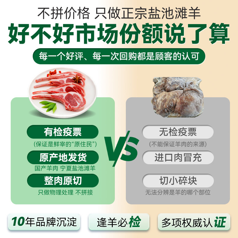 法式羊排4支新鲜12肋宁夏盐池滩羊肉烧烤食材半成品原切战斧羊肉