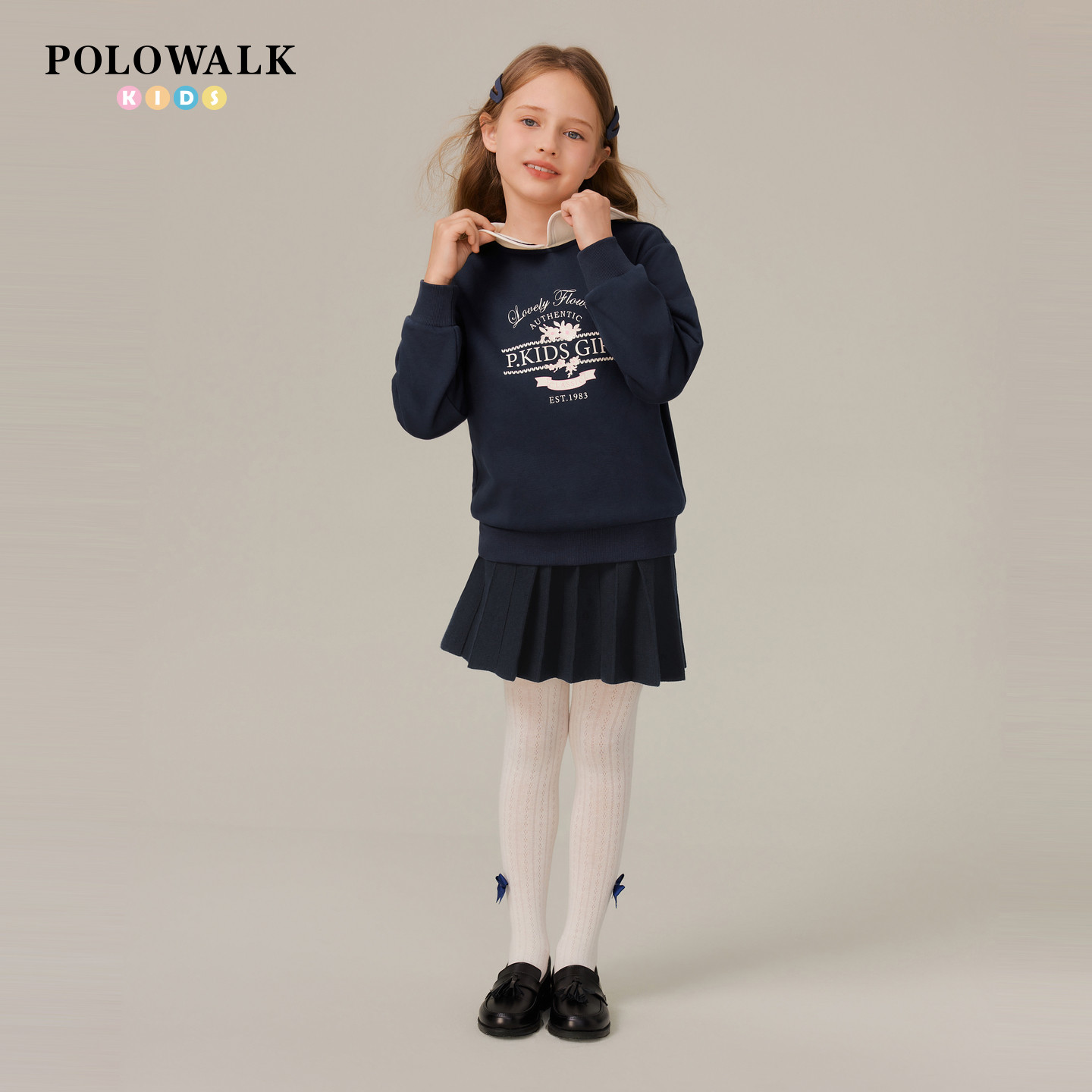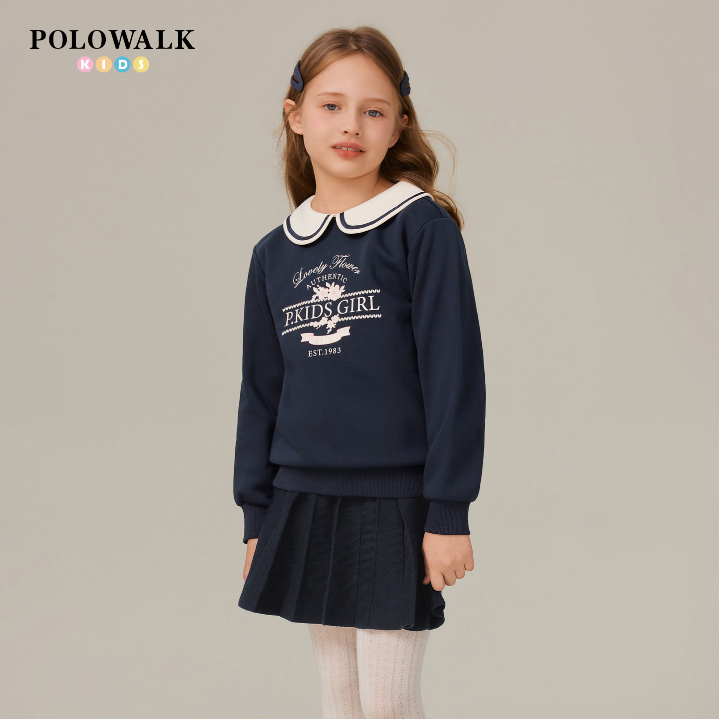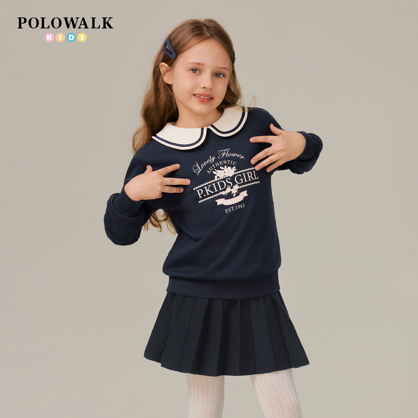 POLOWALK童装女童卫衣2026春夏新品娃娃领外套印花休闲百搭上衣