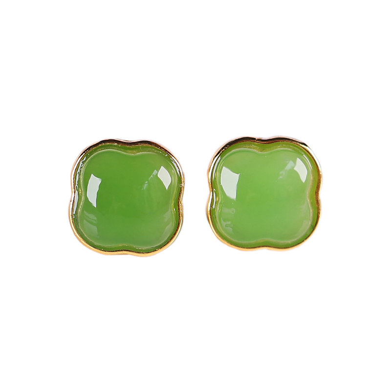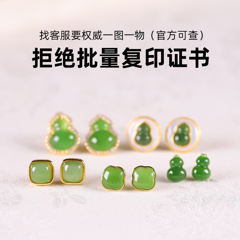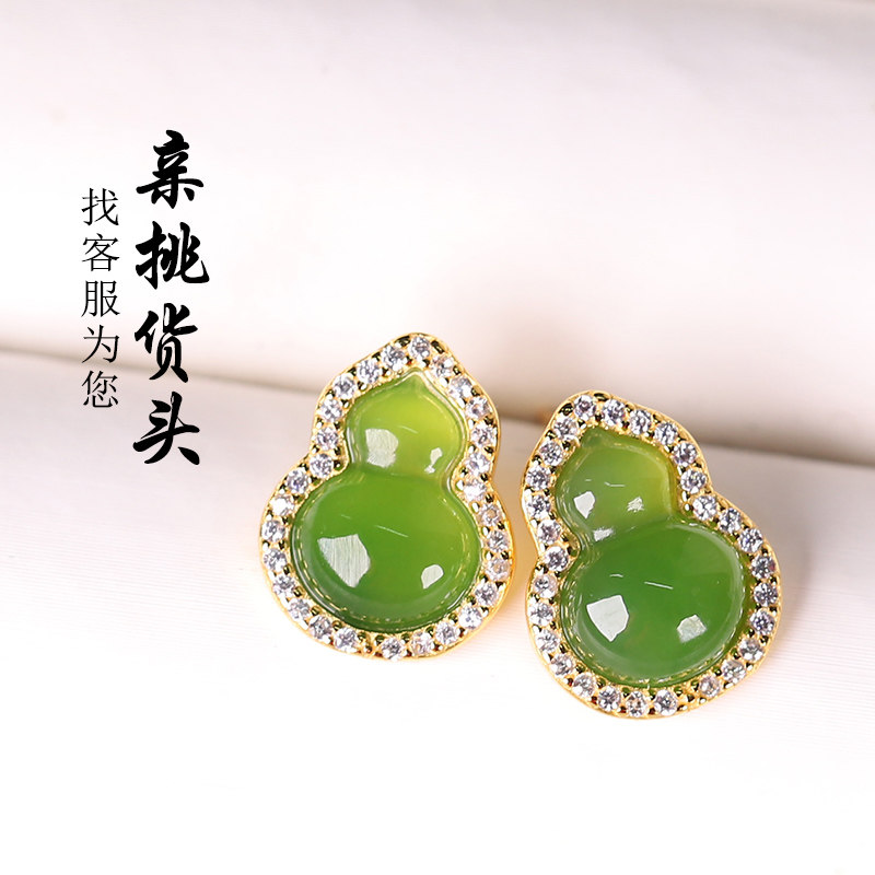 和田玉碧玉耳钉亲宝水晶天然苹果绿碧玉耳坠玉石耳饰女饰品