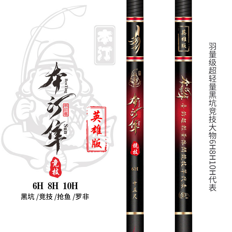 本汀隼英豪版6H8H10H黑坑竿正品超轻超硬巨物鱼竿鲤鲫钓鱼手竿