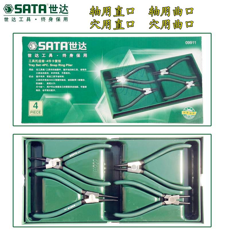 世达4件卡簧钳组套 轴用直口 曲口 穴用直口 曲口 卡钳工具托套装