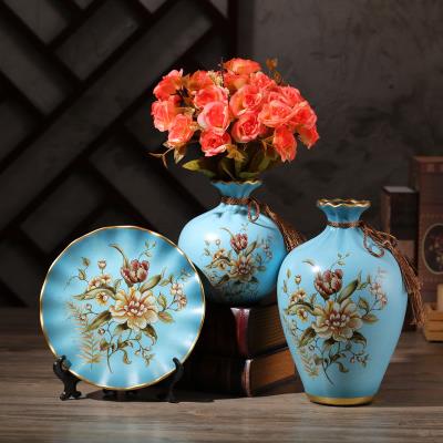 极速美式欧e式创意家居装饰品客厅摆件欧式陶瓷花瓶三件套插花器