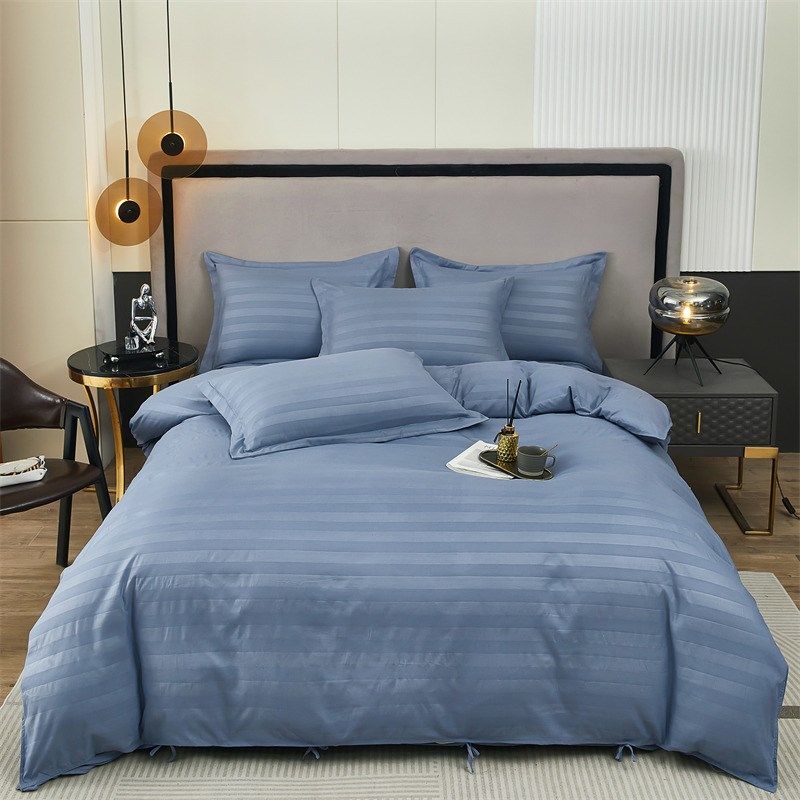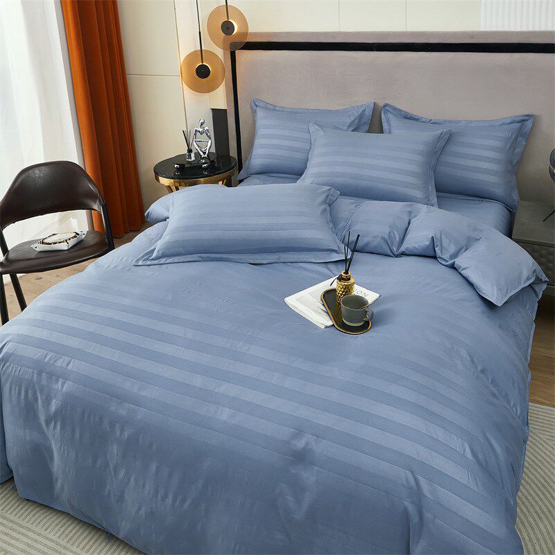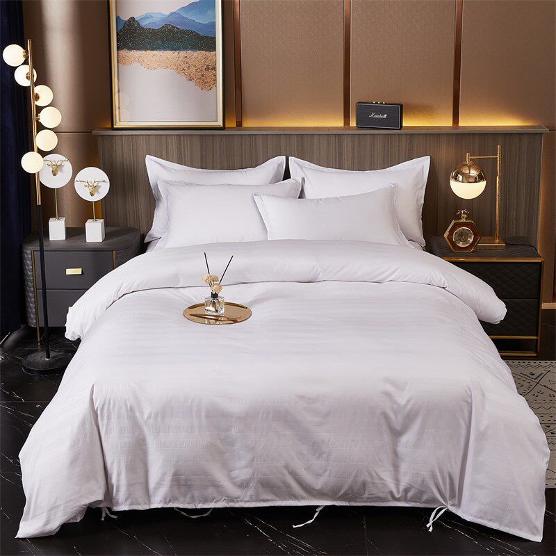 酒店纯色贡缎四件套床上用品民宿宾馆布草单人床单被套通用