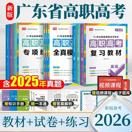 库课广东省高职高考2026新版教材3+证书高职高考考试复习资料25历年真题模拟试卷语文数学英语3三加中职生对口升学单招考资料现货
