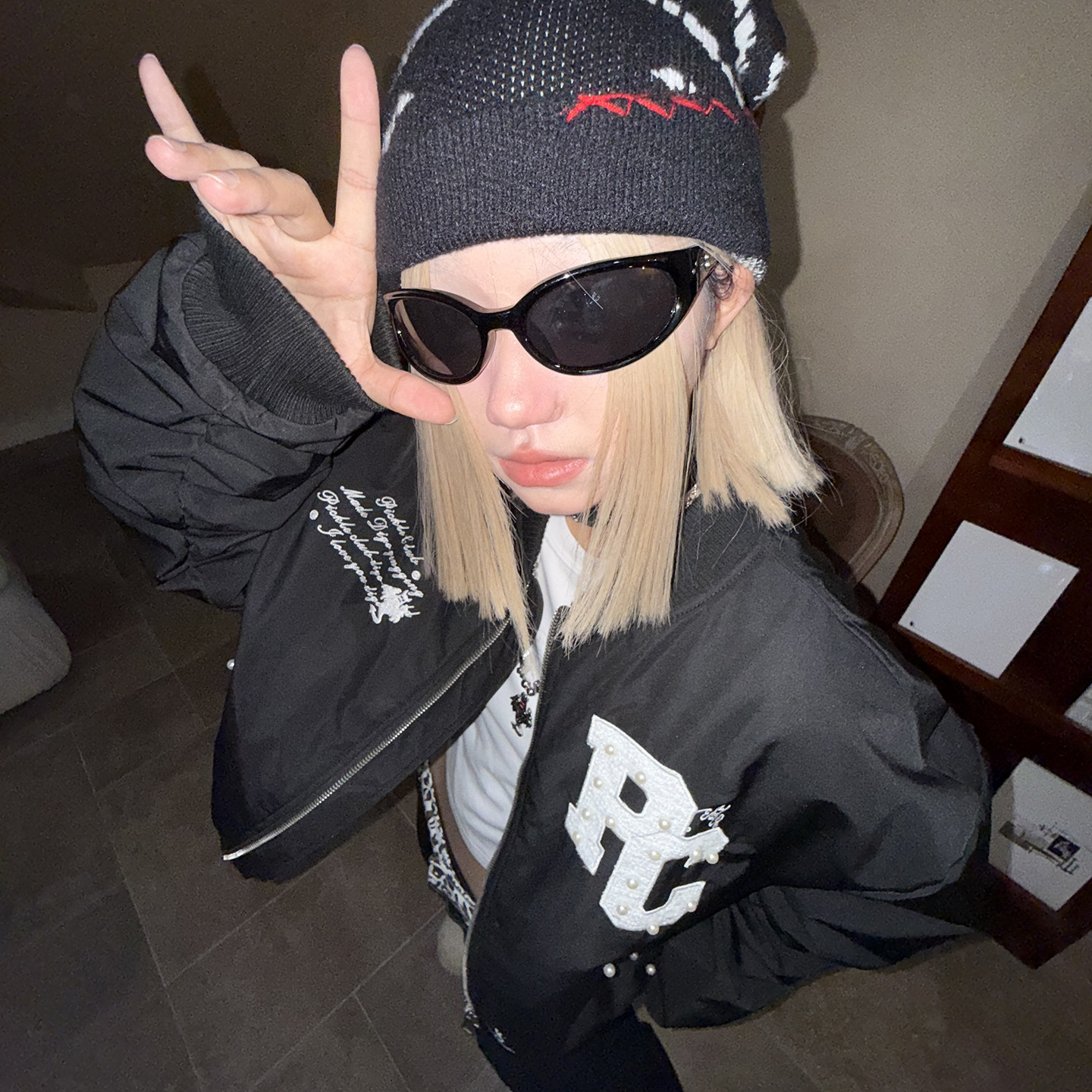 梁拌泡菜美式复古幽灵泡珠贴布绣棉服夹克男女宽松短款休闲外套