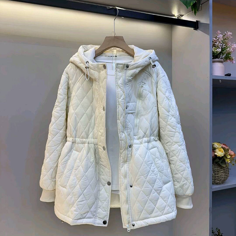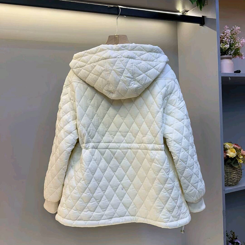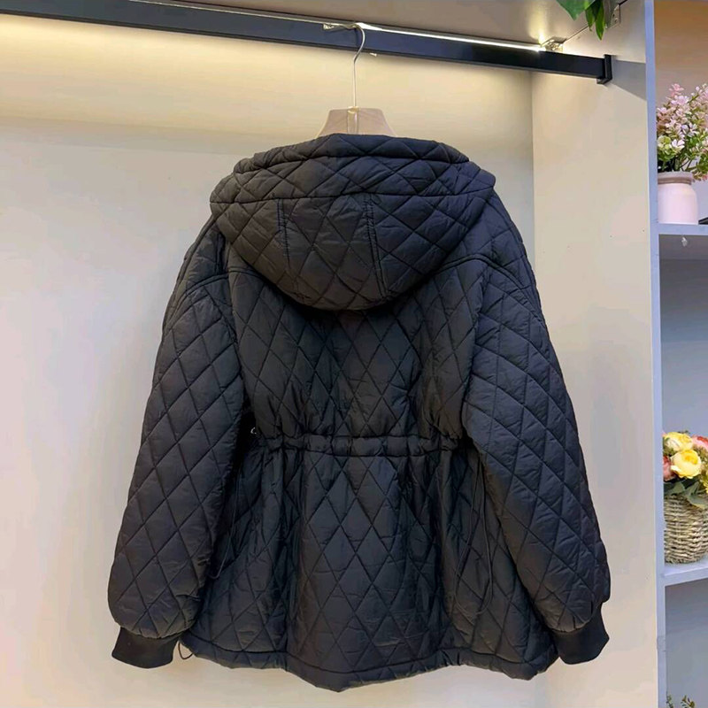 韩版休闲菱格收腰连帽棉服外套新