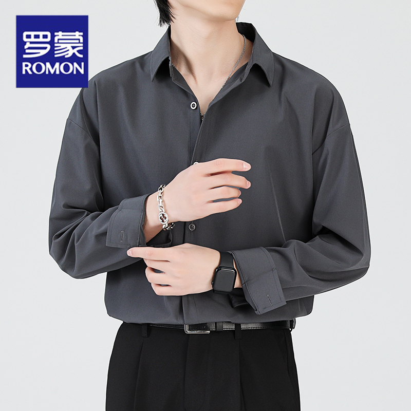 罗蒙轻奢高级感多色衬衫男长袖韩版宽松衬衣男简约质感潮流上衣男