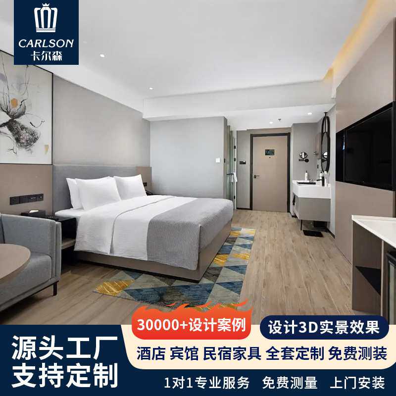 悦华酒店民宿标间客房成套家具快捷商务宾馆床屏床体固装家具工厂
