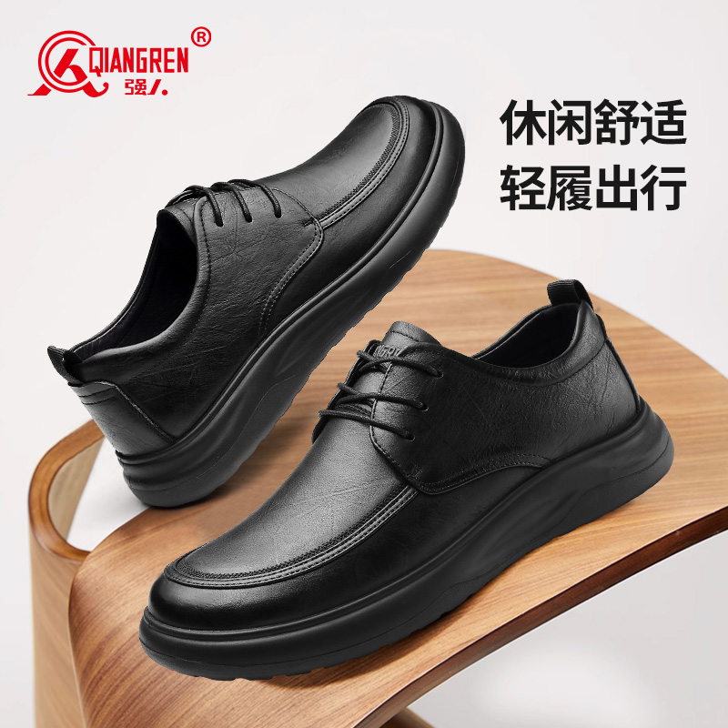 强人3515男鞋2025春季新款商务休闲皮鞋男真皮软底透气中年爸爸鞋