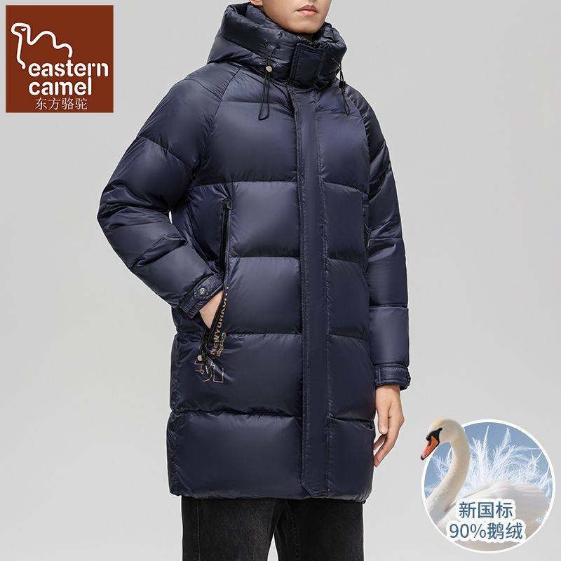 【鹅绒】东方骆驼男士中长款连帽羽绒服冬季新款保暖百搭印花外套