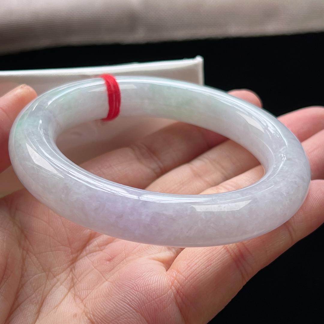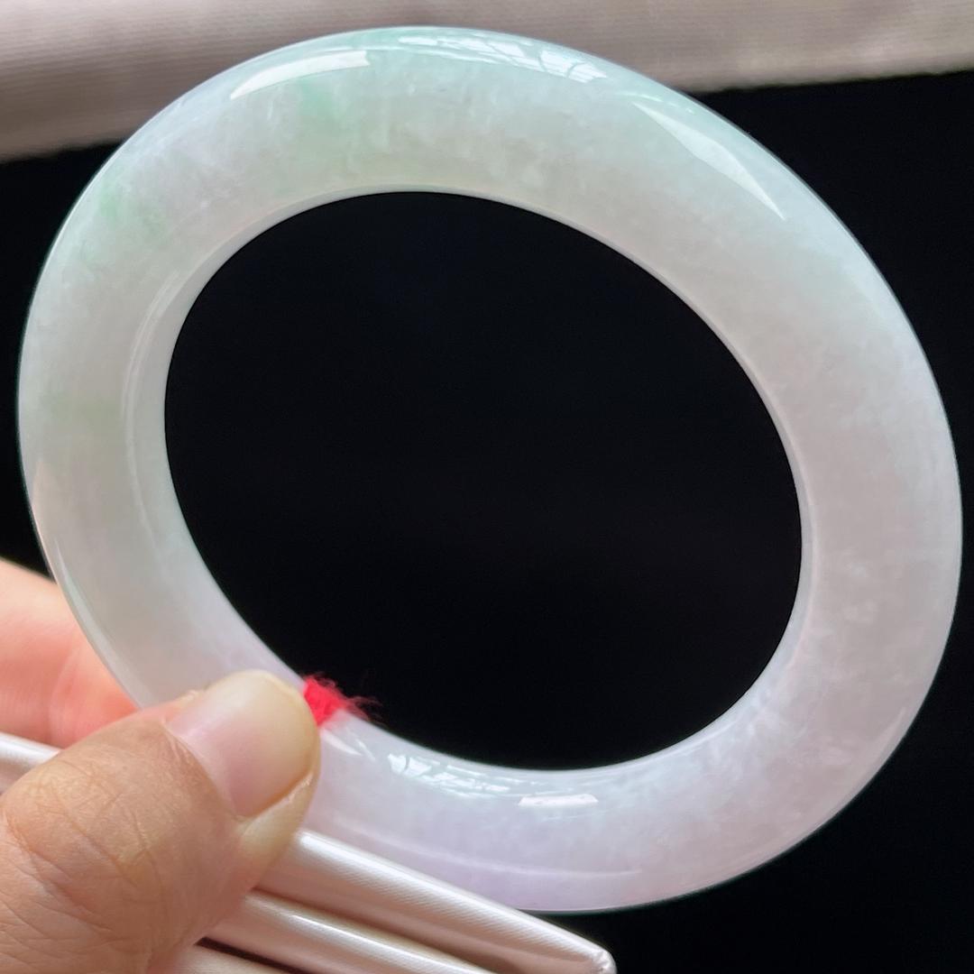 缅甸翡翠玉手镯福镯圆条58圈口天然玉石A货冰糯种春彩证书1003