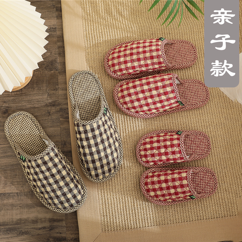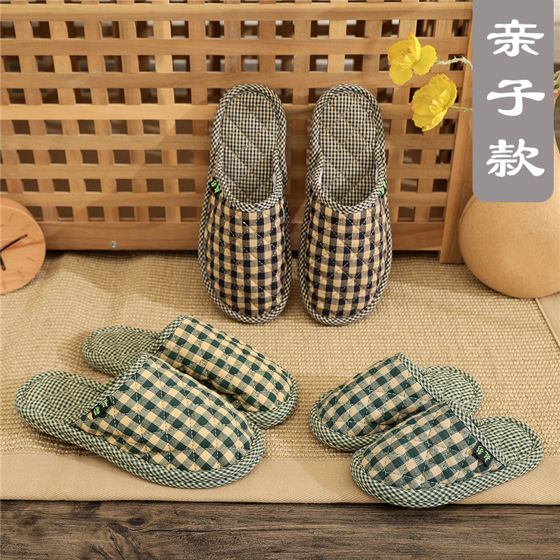 包头静音居家一家三口春秋冬布艺布底室内家用无声软拖鞋男女儿童