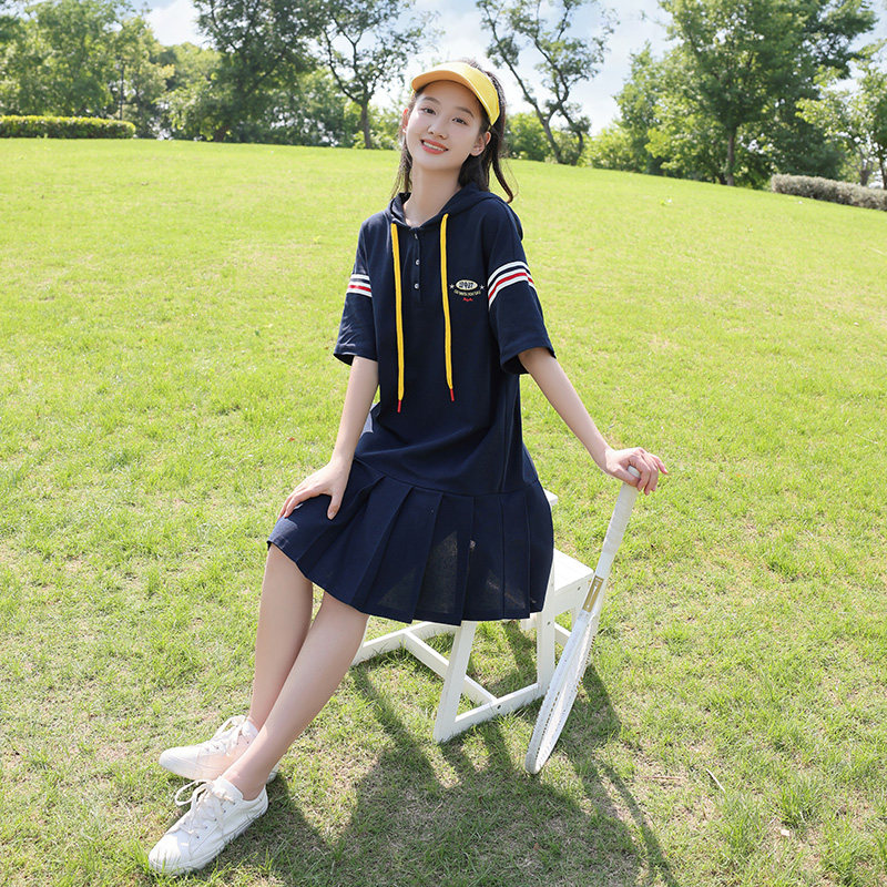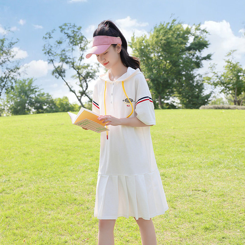 休闲风连衣裙舒适宽松连帽