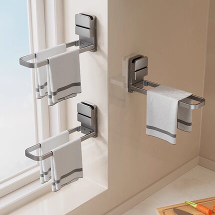 厨房吸盘抹布沥水架收纳置物架毛巾架多功能折叠挂杆水槽窗台壁挂