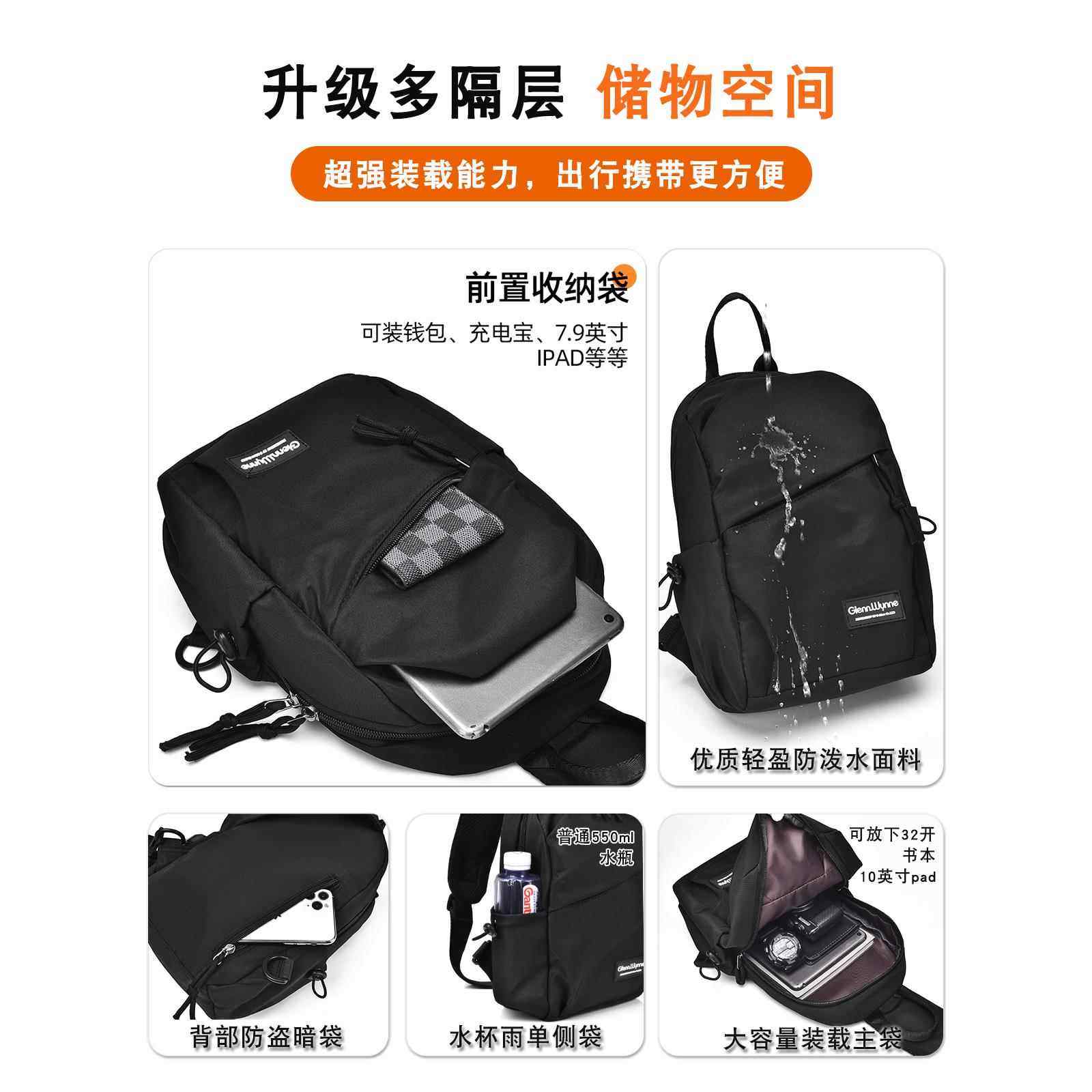 胸包男款单肩包女腰包运动挂包百搭休闲斜跨包小背包斜挎包胸前包