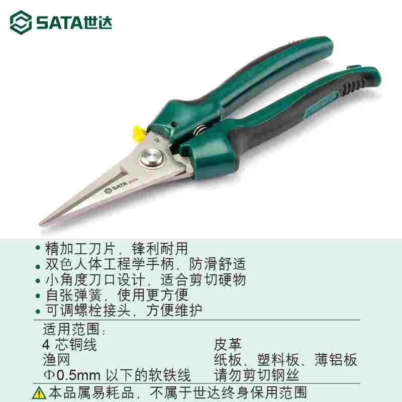 五金工具电工剪刀SATA 双色柄多功能8寸线槽剪刀剪电线93106