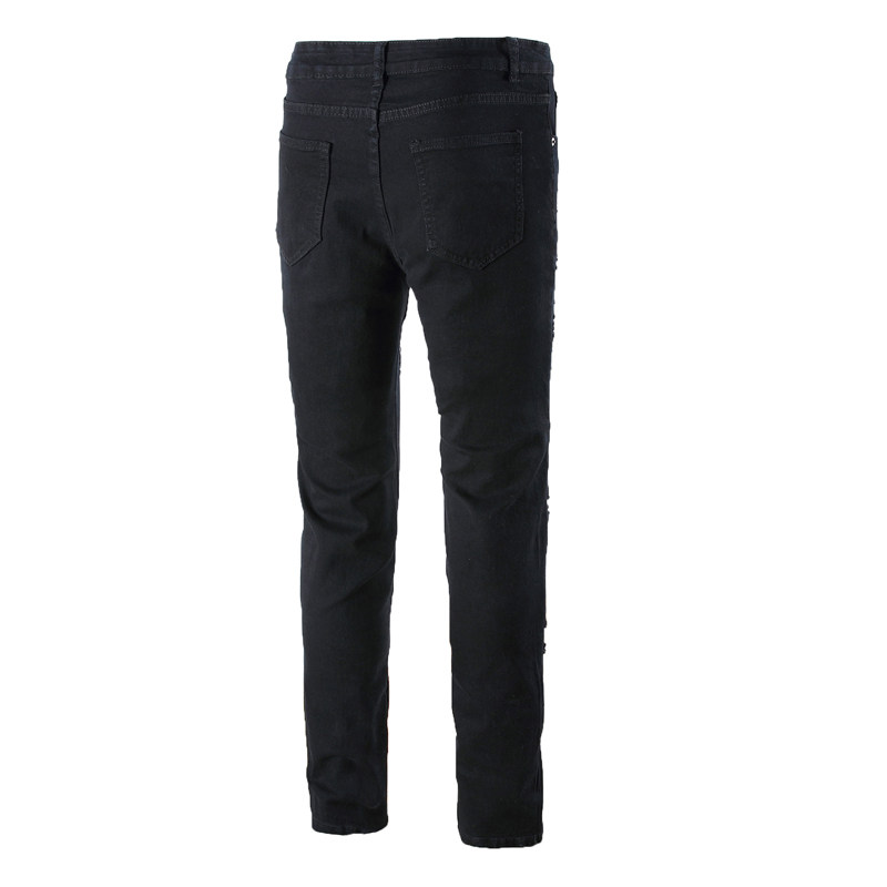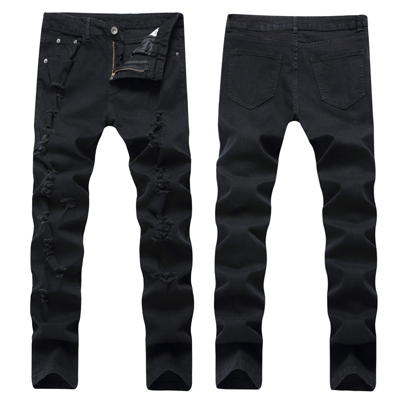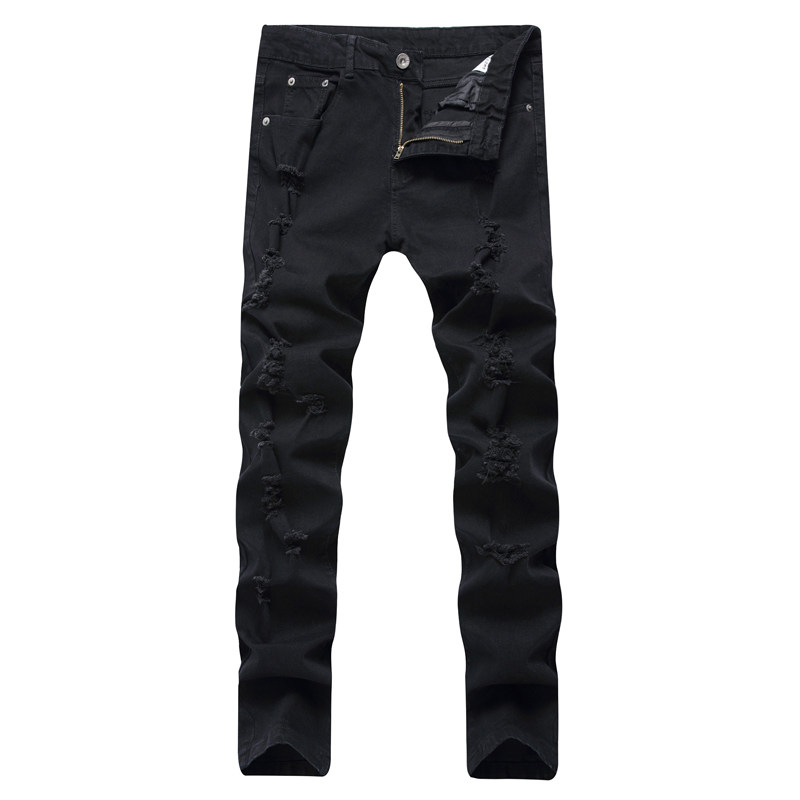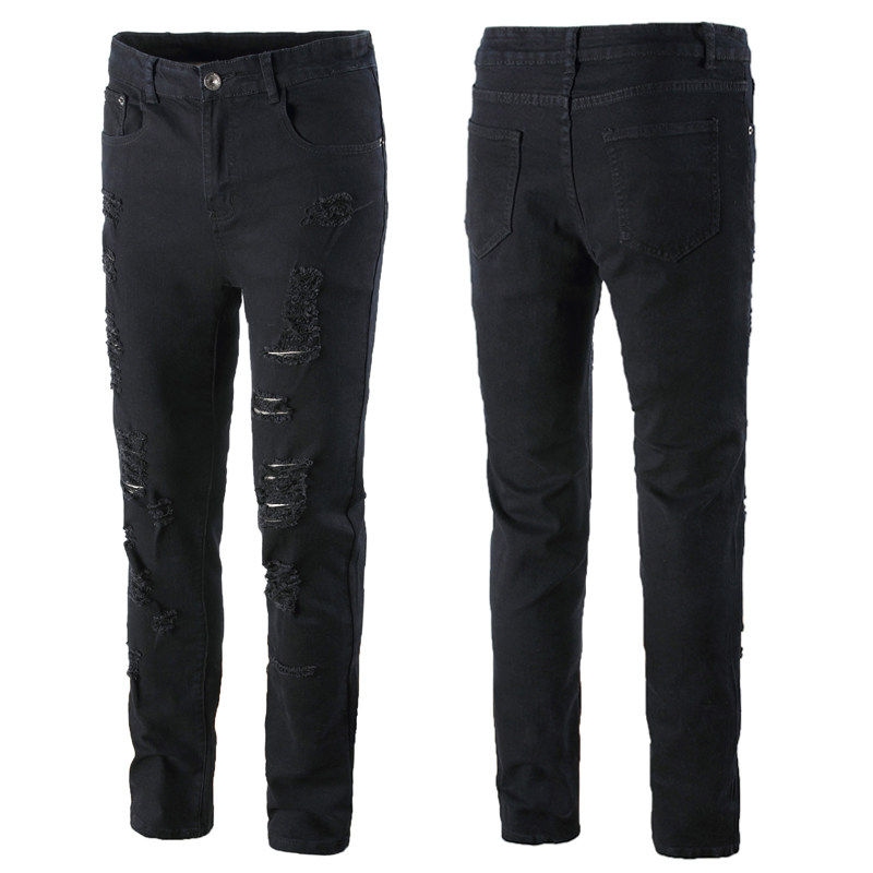 EXO权志龙同款JEANS高街潮男膝盖破洞小脚牛仔裤刀割弹力乞丐裤子