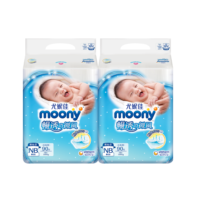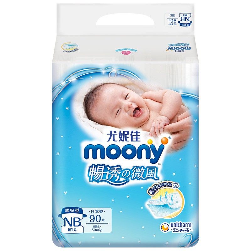 尤妮佳moony畅透新生儿纸尿裤宝宝婴儿尿不湿超薄男女通用NB90片