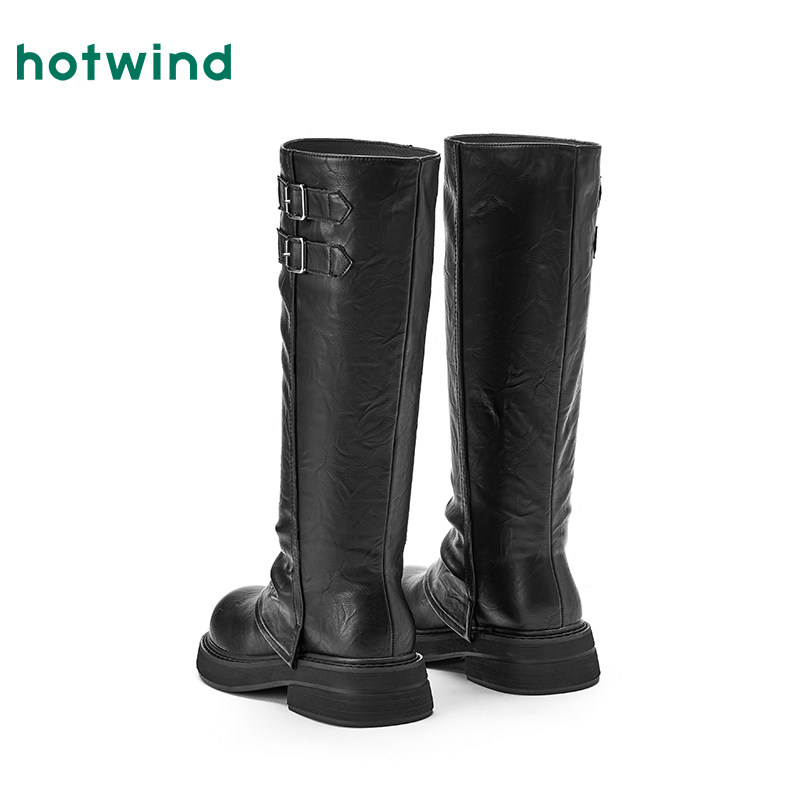 热风厚底长筒靴女2025年冬季新款美拉德裤管靴复古骑士靴百搭靴子