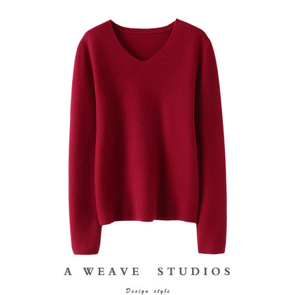 温柔迷离!气质反针~V领羊绒衫女纯羊绒毛衣套头针织打底衫秋冬