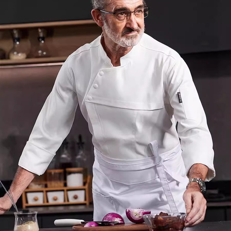 厨师工作服男烘焙甜品蛋糕店面包师厨E衣厨师服装长袖印绣LOGO秋