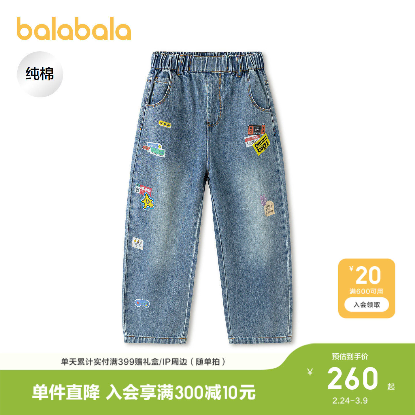 【商场同款】巴拉巴拉童装儿童裤子男童2026春季新款牛仔裤气球裤