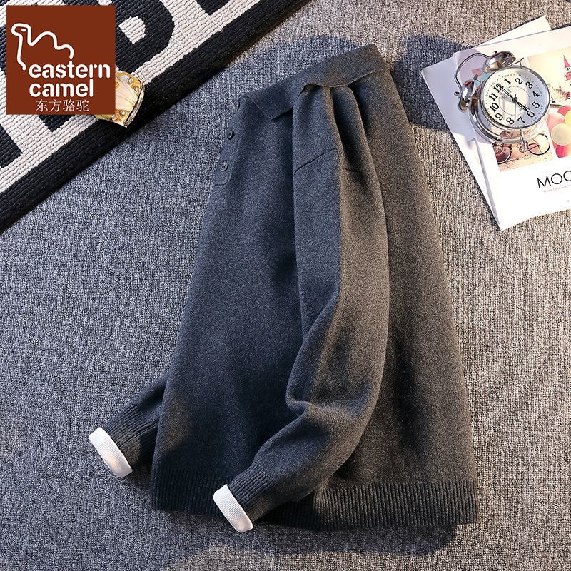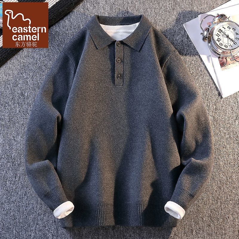 东方骆驼polo领毛衣男秋冬季长袖慵懒风针织衫复古潮宽松套头上衣