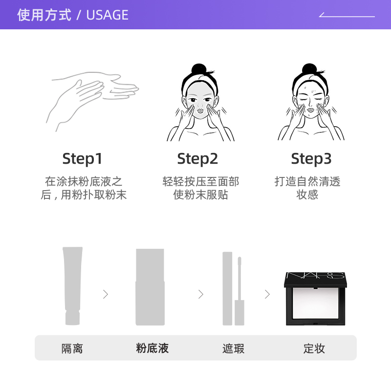 【自营】Nars/娜斯流光美肌轻透蜜粉饼 10g国内专柜款