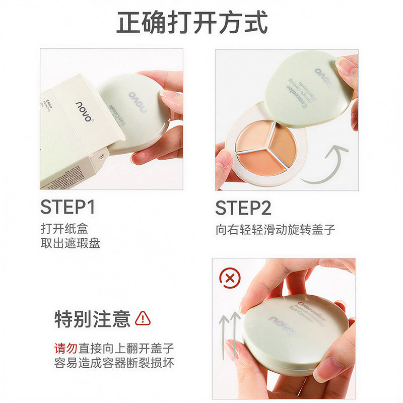 NOVO三色遮瑕膏遮盖斑点痘印泪沟脸部黑眼圈防水防汗不卡粉学生党