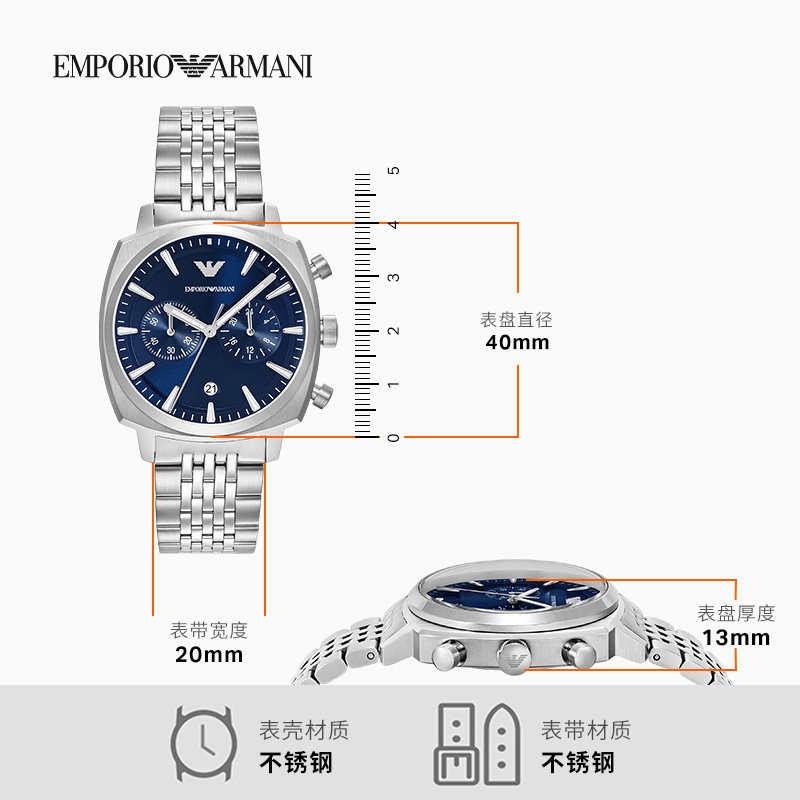 【圣诞礼物】EMPORIO ARMANI/阿玛尼秋冬新款男钢带石英手表腕表