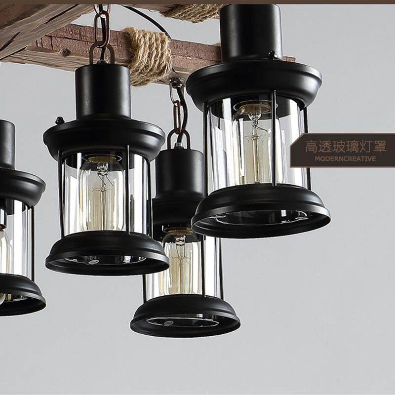 美式乡村木头麻绳装饰灯复古工业风餐厅客厅主题酒吧网咖木艺吊灯