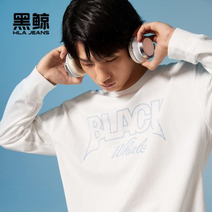 海澜之家旗下黑鲸宽松圆领长袖T恤男春字母印花套头衫男商场同款