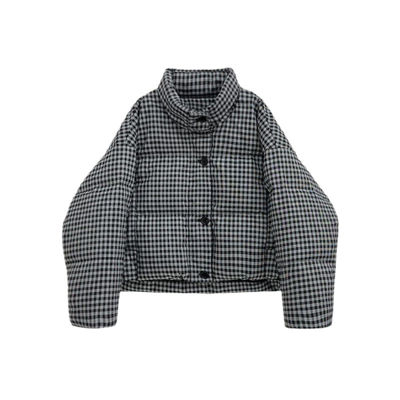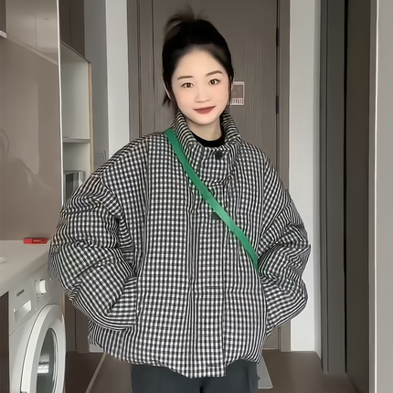 90白鸭绒女神保命千鸟格羽绒服女短款2025冬季新款韩版宽松外套潮
